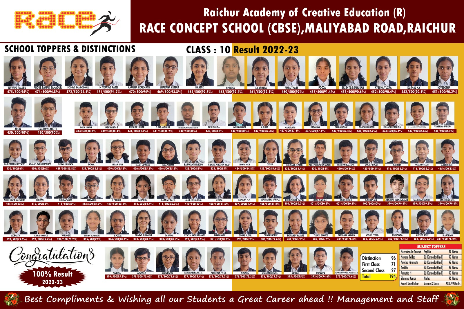 CLASS X RESULTS 8th Batch 2023-24 7th Batch 2022-23 6th Batch 2021-22 5th Batch 2020-21 4th Batch 2019-20 3rd Batch 2018-19 2nd Batch 2017-18 1st Batch 2016-17